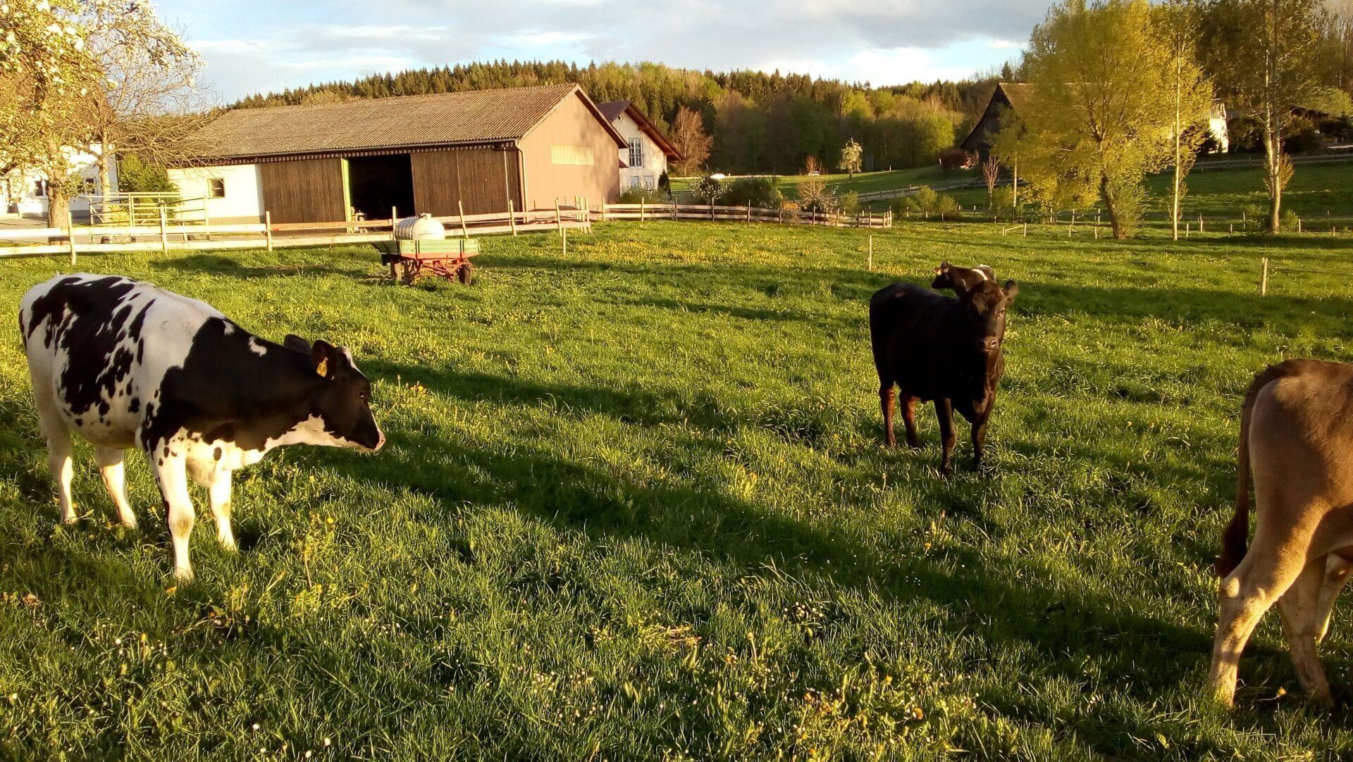 Wir sind ein Familienbetrieb und halten Milch- und Fleischrinder. Da uns Nachhaltigkeit und Tierwohl sehr am Herzen liegen, bekommen unsere Tiere nur gentechnikfreies Futter, beste Silage und Heu von unseren Wiesen und Äckern. Die Rinder werden von uns mit Liebe aufgezogen, haben viel Platz, frische Luft und bekommen die Zeit, die sie brauchen um eine gute Fleischqualität zu entwickeln.